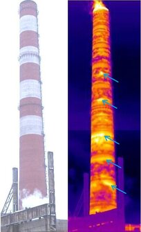 Результат: При обработке термограммы выявлены аномалии, свидетельствую-щие о повреждении футеровочного слоя дымовой трубы